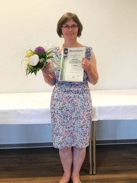 Am Freitag, den 25.05.2018 würdigte der Kreissportbund gemeinsam mit dem Landkreis Ostprignitz-Ruppin das ehrenamtliche Engagement der Sportvereine. So wurden im KMG Klinikum in Kyritz 2 Clubs als auch 14 besonders engagierte Ehrenamtler/innen ausgezeichnet. So sei es wichtig den Ehrenämtern zu danken, welche sich in über 150 Sportvereinen mit knapp 130.000 Mitgliedern im Landkreis OPR engagieren, so der KSB-Vorsitzende. Zu den Ausgezeichneten gehört unsere Schatzmeisterin Veronika Enseleit, welche für ihre ehrenamtliche Tätigkeit als langjährige Schatzmeisterin im SC Kempo – Neuruppin mit der KSB-Ehrennadel in Silber ausgezeichnet wurde.