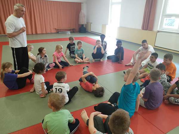 Vom 15.04. bis zum 26.04.2019 konnten in Zusammenarbeit mit dem Hort Sonnenkinder der Karl Liebknecht Schule zwei Schnupperkurse „Ich bin stark“ , in Anlehnung an das Programm „Nicht mit mir“ des Deutschen Ju Jutsu Verbandes durchgeführt werden. Die Grundidee in diesem Schnupperkurs war es, dass die persönlichen Grenzen eines jeden Mädchens oder Jungen erkannt und akzeptiert werden. Es werden Regeln für einen vertrauensvollen Umgang aufgestellt und eingehalten. Es geht in erster Linie um eine persönliche Haltung und nicht um Techniken. Ziel ist die Förderung eines gesunden Selbstwertgefühls und die Durchsetzungsfähigkeit, die Artikulation eigener Bedürfnisse sowie eine Information und Aufklärung. Recht herzlichen Dank an Manja und Paul für ihre tatkräftige Unterstützung.